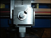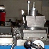 The second from the left in the photo shows a holder for use exclusively on the compound rest of a 7 x ** lathe It also has several grooves for the toolbit. I have since found that one needs only one groove to do both functions as will be shown. The bits need an occasional adjustment for height due to wear (not a fun job) and thanks to John Moran, it is made easy by using one of the popular QCTP types as the base for the system. John built a phase II type assembly for his base and the holder can be seen at: http://www.gadgetbuilder.com. Follow the link to Tangential Tool Holder.